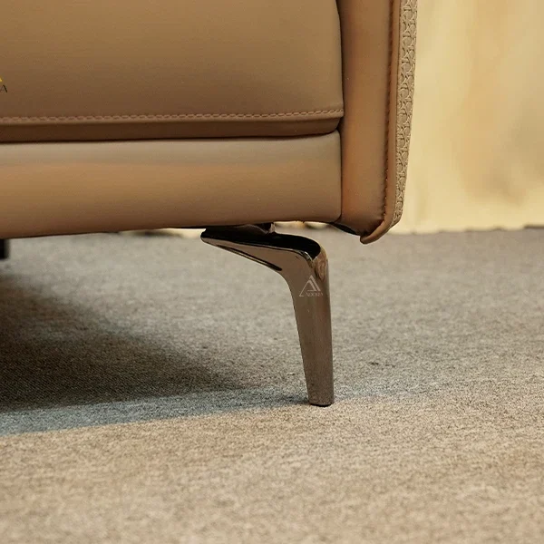 Khung gỗ tự nhiên kết hợp đệm mút chất lượng cao và vỏ bọc da công nghiệp giúp sofa duy trì độ bền ổn định theo thời gian. Bề mặt dễ lau chùi, phù hợp với gia đình có người lớn tuổi hoặc trẻ nhỏ.